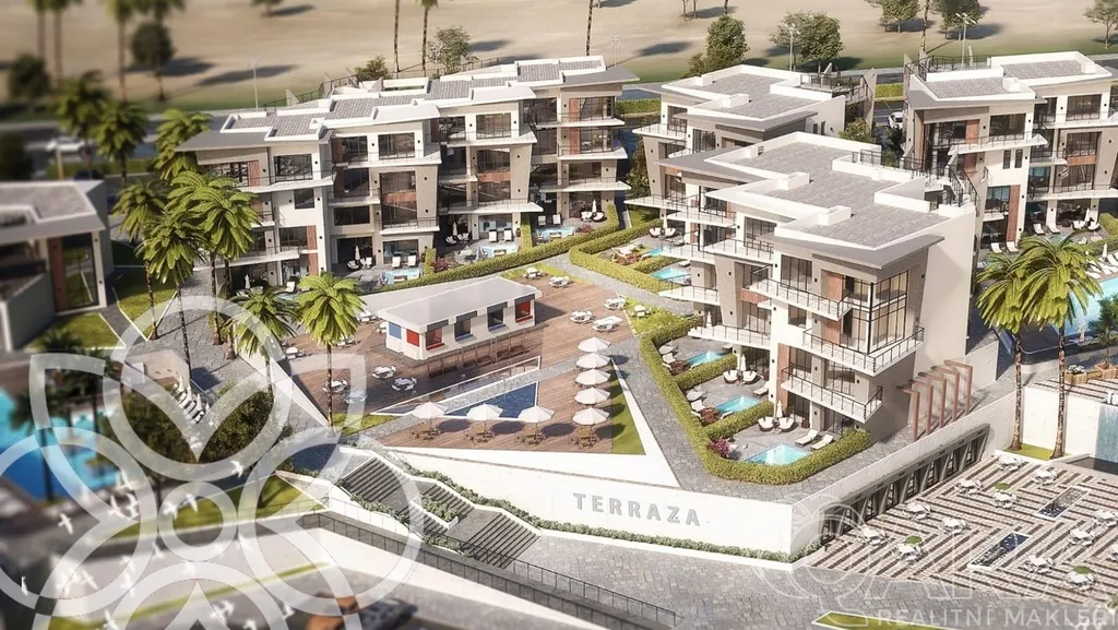 Byt 3+kk s terasou a zahrádkou nabízí dvě ložnice, obývací pokoj s kuchyňským koutem a koupelnu. Na přání lze vybudovat i soukromý bazén.
