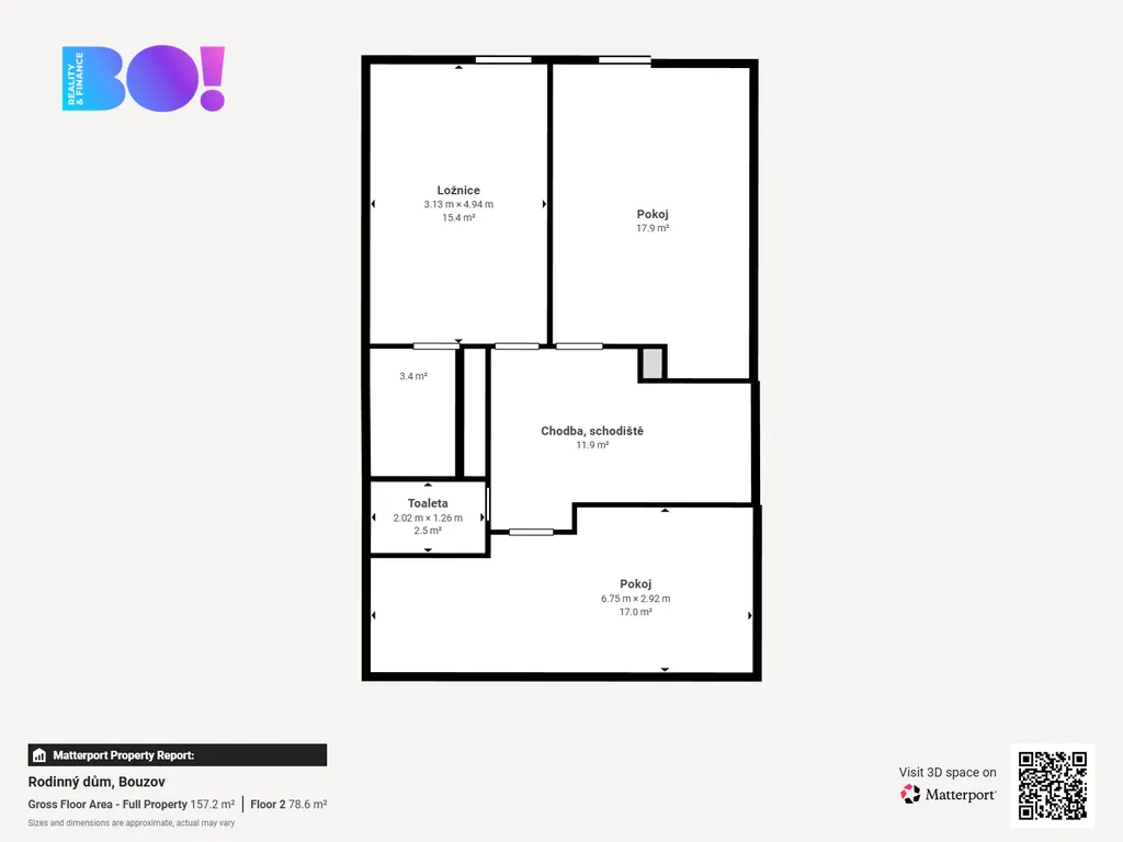 Dům nabízí dispozici 4+kk s užitnou plochou 146 m², rozloženou do dvou podlaží.
