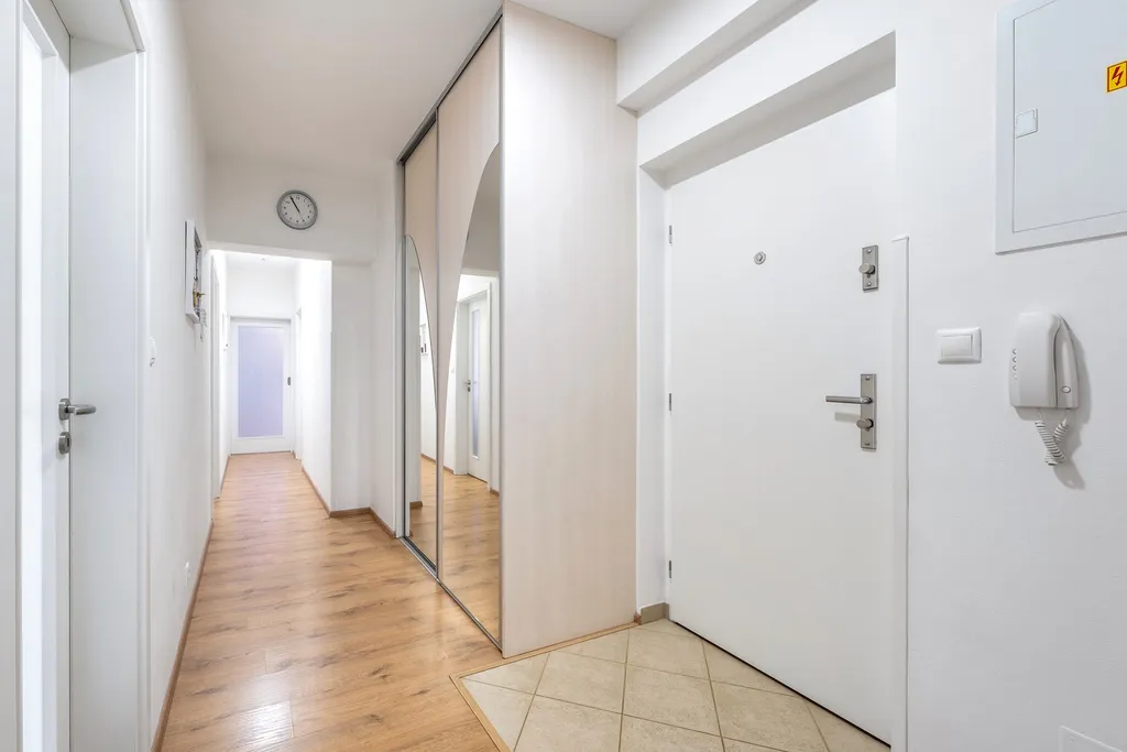 Nabízíme Vám ke koupi jednotku o velikosti 4+kk byt v osobním vlastnictví o výměře 75 m2 s terasou 45 m2 a sklepem 4.5 m2 (komorou) umístěný na stejném patře jako je byt s možností přikoupení až 3 parkovacích míst (jedno přímo v domě - na videu bytový dům vlevo a dvě ve vedlejším domě - na videu bytový dům vpravo) nacházející se v prvním patře domu na adrese Brno, Žebětín, ulice Hvozdecká (Kamechy) - kolaudováno v r. 2012, vstup do domu na čipy, kamerový systém, pravidelný řádný týdenní úklid, dálkové ovládání garážových sekčních vrat.
