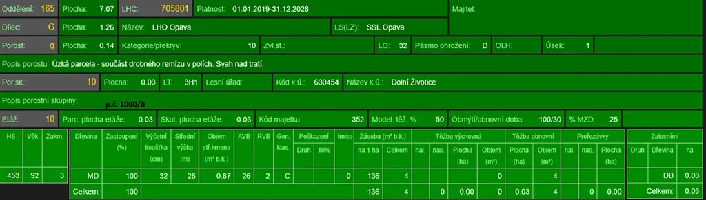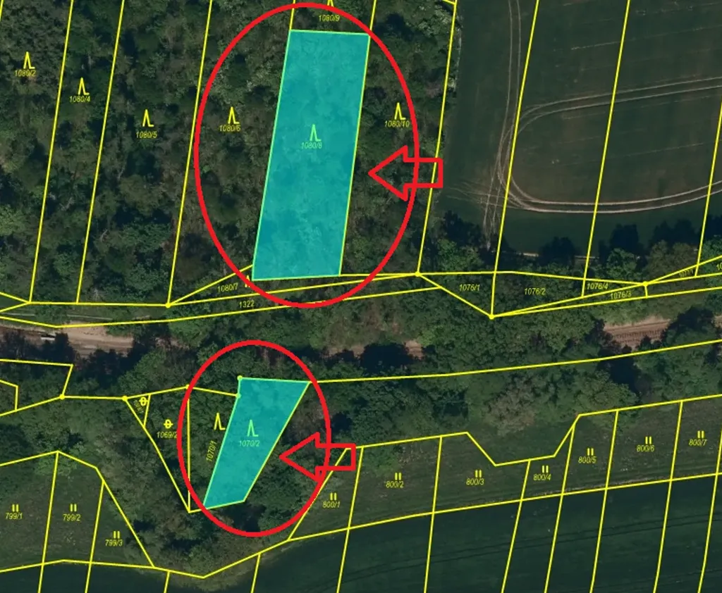 - p.č. 1070/2 vedená jako lesní pozemek o celkové výměře 461 m2 (stáří lesa 99 let - zastoupení dřevin jasan, javor, olše, dub),