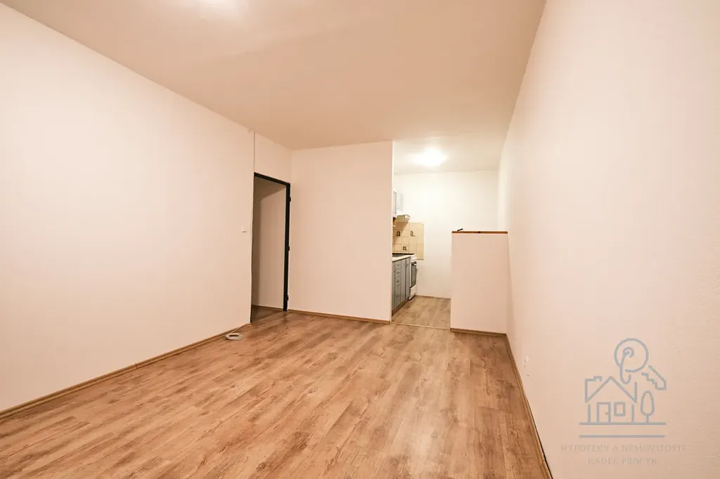 Dispozičně je řešen jako předsíň, koupelna s vanou, obývací pokoj s kuchyňským koutem a samostatná ložnice.