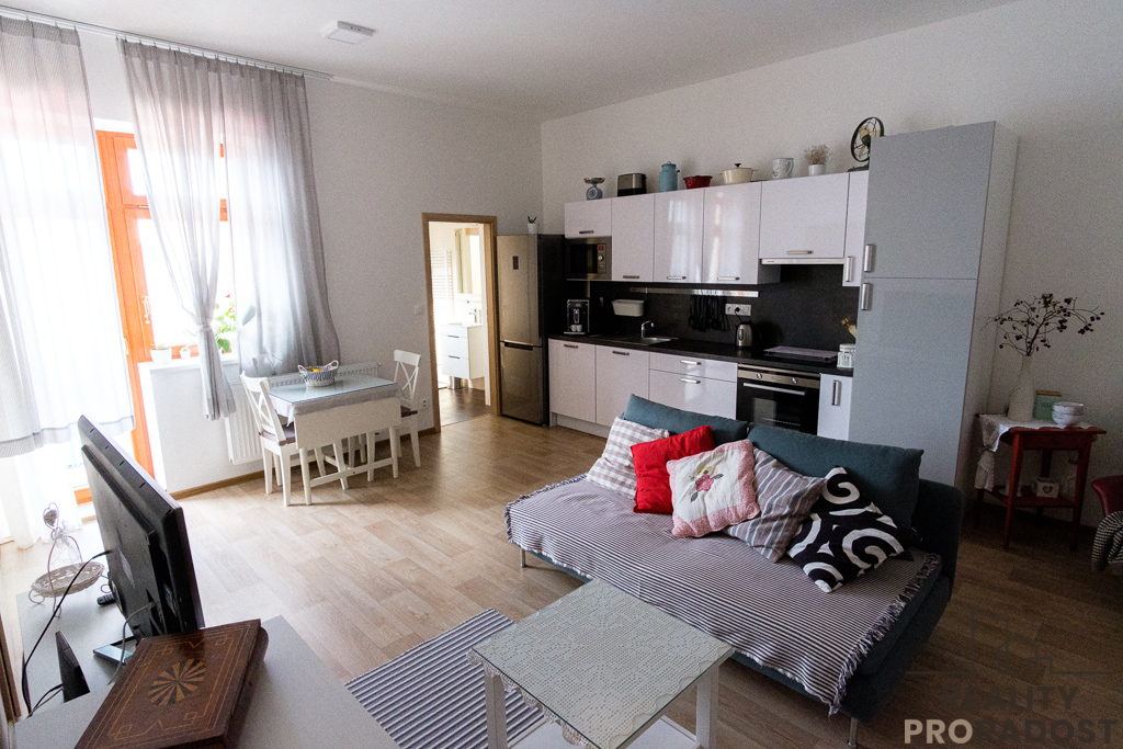 V zastoupení majitele nabízíme k pronájmu kvalitně zrekonstruovaný, cihlový byt 2+kk s balkonem o celkové podlahové ploše 52,82 m2, včetně balkonu (5,1 m2), ve 4.NP (3. patro) historického domu v samotném centru města Olomouce – Dolní náměstí.