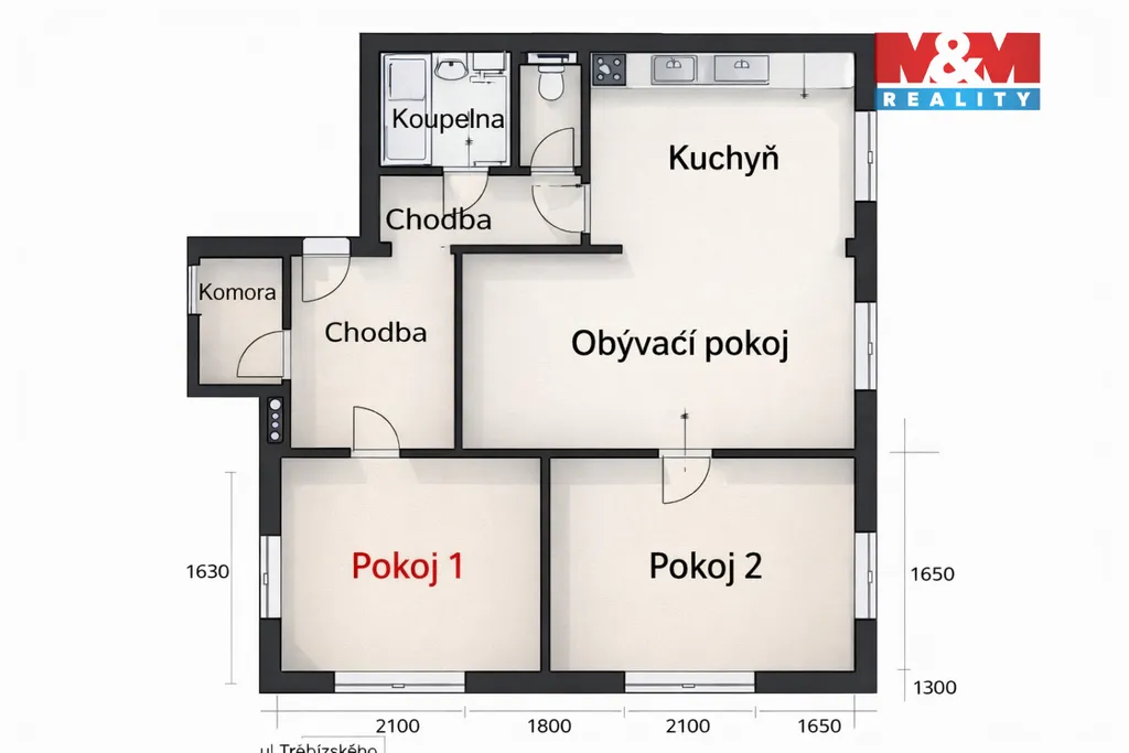 Byt prošel rekonstrukcí a je částečně vybaven. K dispozici je kuchyňská linka s elektrickou troubou, sklokeramickou varnou deskou, myčkou nádobí a pračkou. Byt disponuje prostorným obývacím pokojem, ložnicí a dalším samostatným pokojem.