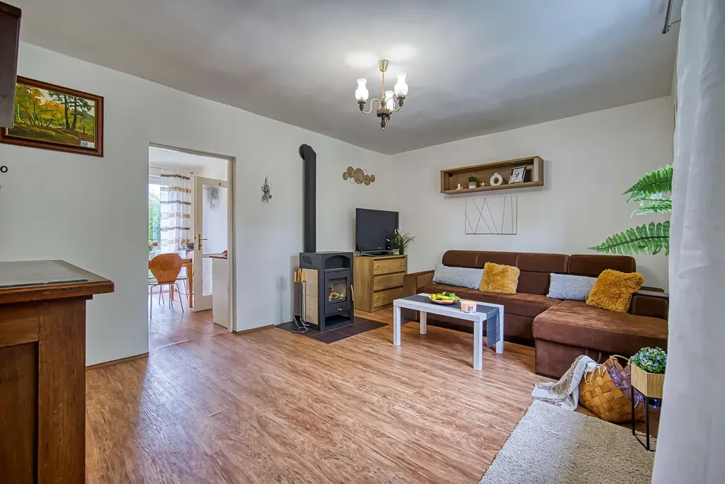 Vytápění je zajištěno krbovými kamny a elektrickými přímotopy, které udržují pohodlnou teplotu po celý rok.