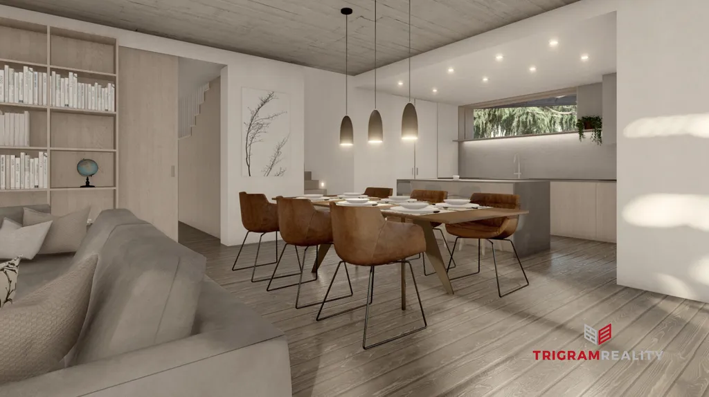 Na pozemku o rozloze 753 m² se na jaře začne stavět unikátní zděný dům o dispozici 6+kk s prostornou garáží pro dvě auta a celkové užitné ploše 255 m². Tento projekt je velmi povedený, vkusný a citlivě zasazen do okolní zástavby a blízké přírody.