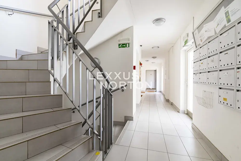 Byt disponuje vstupní chodbou, kuchyňským koutem propojeným s obývacím pokojem, 2 ložnicemi a koupelnou. Garážové parkovací stání je možné pronajmout za poplatek 2 900 Kč/ měsíc.
