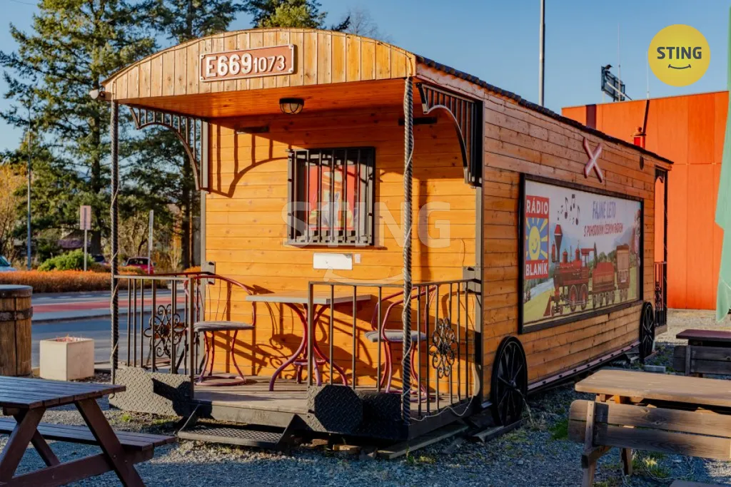 Vagonek není jen o voze jako takovém, součástí je i "čekárna" a venkovní posezení, kde hladoví pocestní mohou spočinout, právě s těmi dobrotami, které jim v bistru či kuchyni, která je součástí nádražní budovy, připravíte.