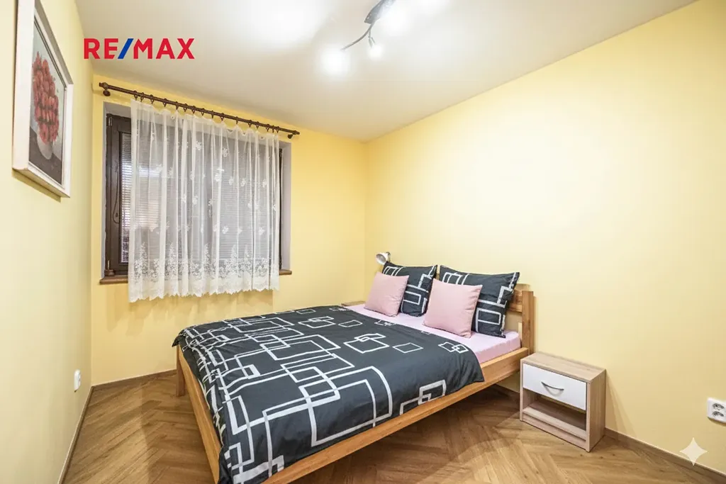 tři ložnice (2× manželská postel, 1× plnohodnotné trojlůžko vhodné pro děti), koupelna s vanou, samostatné WC