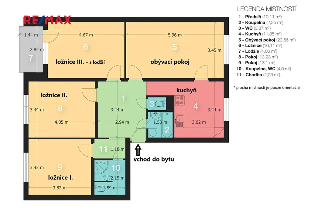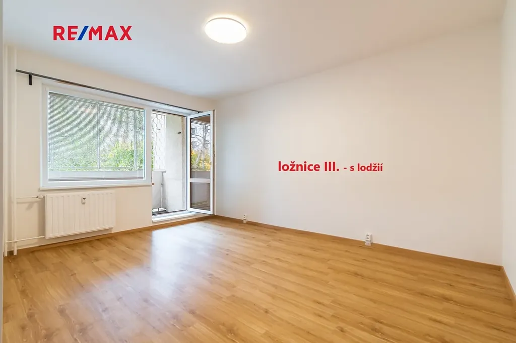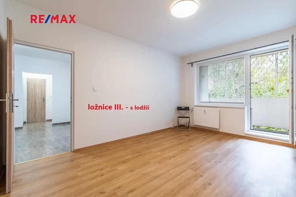• tři samostatné neprůchozí ložnice (jedna s lodžií) - 16,5 m²; 13,9 m²; 13,5 m²