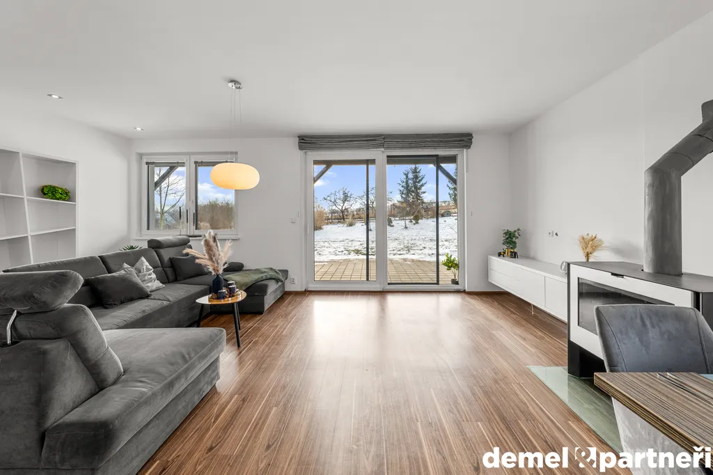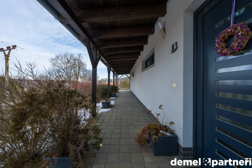 No a co venky? Tak tam na tebe čeká 642 m² udržované zahrady, která je rovinatá a naprosto ideální k jakémukoliv využití. Výhledy do okolní krajiny a naprostý klid. Na pozemku dále najdeš dřevěný přístřešek pro auto včetně elektro nabíječky. V létě pak oceníš obrovskou pergolu podél celé stěny domu, díky které si dopřeješ ty pravé venkovní grilovačky a další technickou místnost třeba pro sekačku anebo jiné zahradní potřeby.