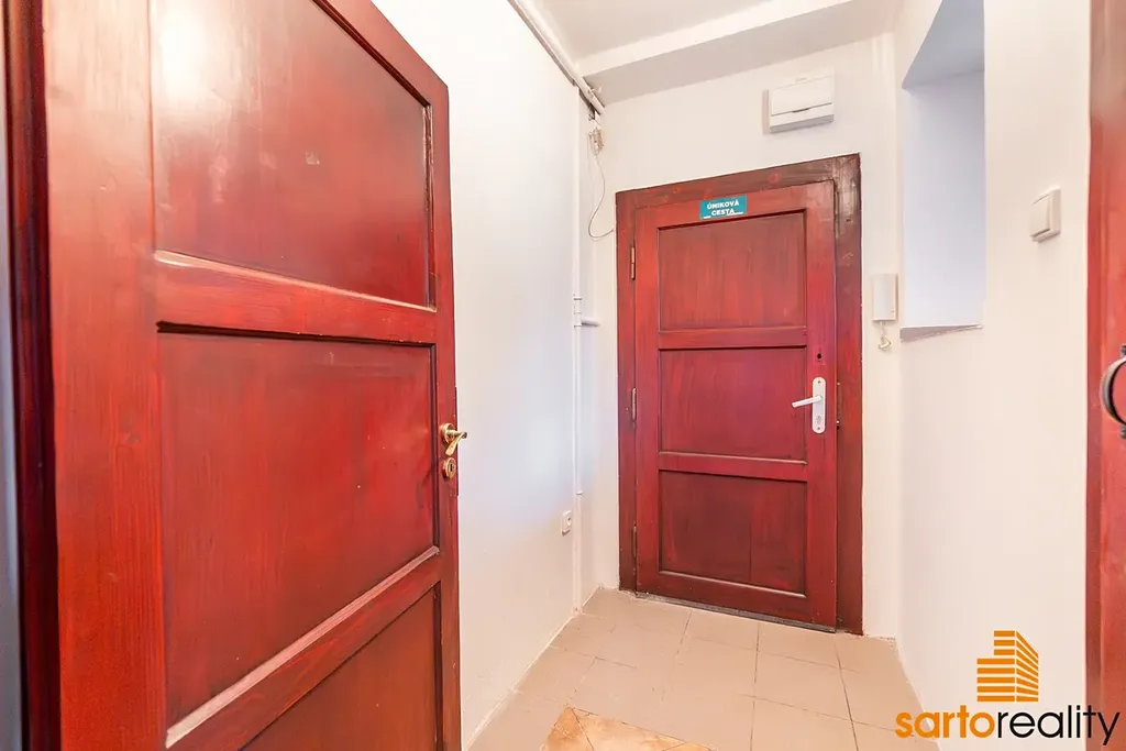 Klidný cihlový dům prošel před několika lety zateplením fasády, opravou střechy a společenství vlastníků zde svědomitě hospodaří. Ve vlastnictví SVJ je i okolní pozemek a tak se teoreticky do budoucna nabízí i varianta vytvoření případného parkování apod.