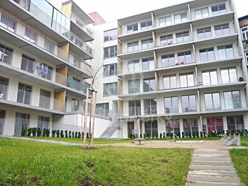 Byt se nabízí s garážovým stáním, tzv. parkování v zakladači (viz fotodokumentace). Ve vnitrobloku je velký dvůr – pěkná zahrada, která je využitelná společně s ostatními nájemníky.