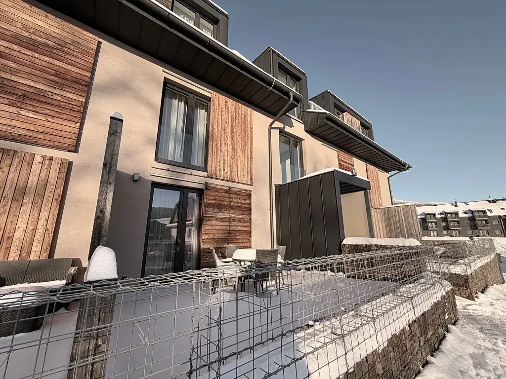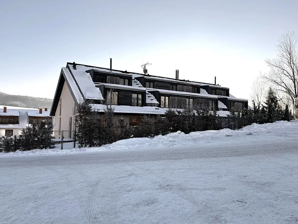 Ve třípodlažní budově, kde se apartmán nachází je mimo apartmány a sklepní kóje i lyžárna, která je určena pro obyvatele či nájemce tohoto domu. Budova, jak je víše uvedeno se nachází v bezprostřední blízkosti sjezdovky, kde bez problémů dojdete v lyžácích přímo k vleku. Samotná budova stojí na velkém uzavřeném pozemku, kde je přístup pouze závorou na dálkové ovládání, což zajišťuje mimo jiné i maximální bezpečnost osob v resortu se nacházejících. U budovy je také malý parčík, kde je ohniště s malou hrací plochou pro děti.
