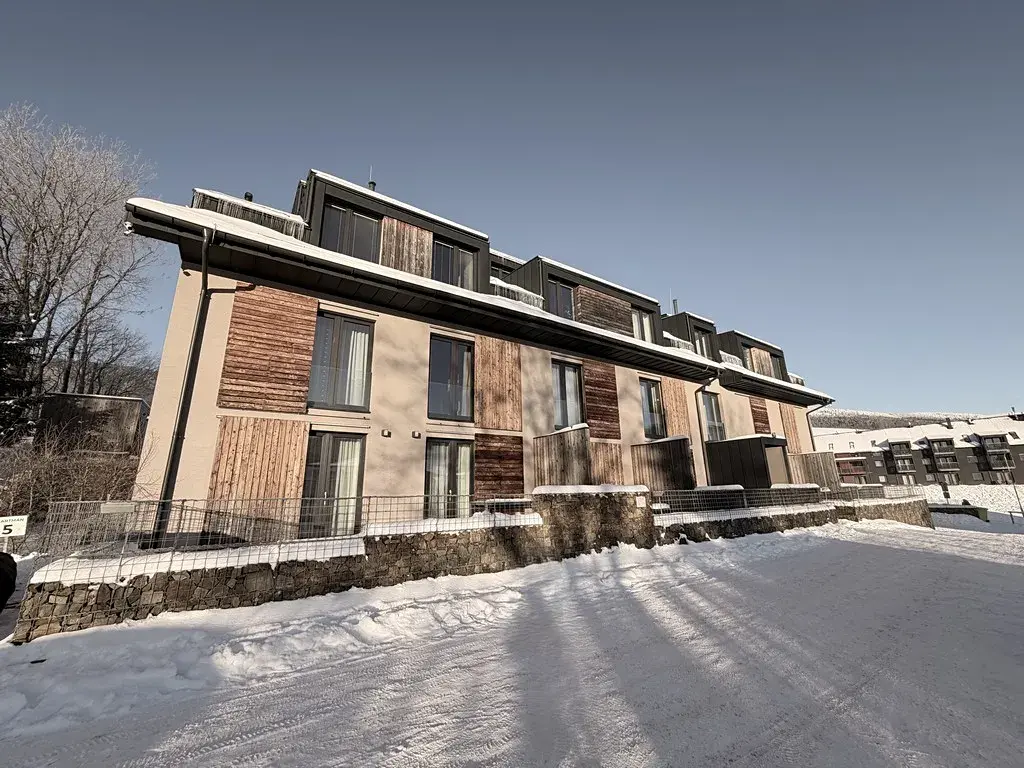 Nabízíme Vám ke koupi apartmán s velkou terasou, sklepem a vlastním parkovacím stáním, který se nachází v malebném prostředí plné přírody na Dolní Moravě, v uzavřeném areálu apartmánů Dolní Morava 73, cca 40 metrů od lyžařského skiareálu Větrný vrch.