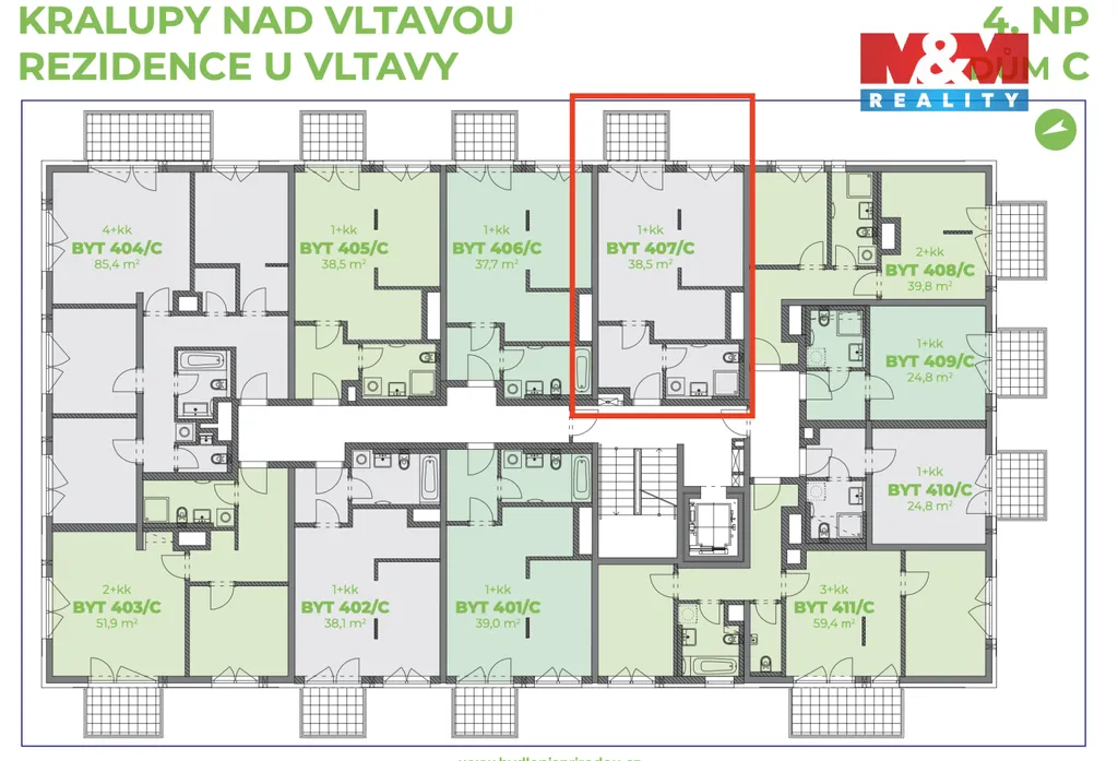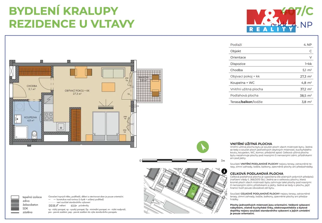 Nabízíme postoupení družstevního bytu 1(2)+kk o rozloze 42 m², s balkonem 4 m². Nachází se ve 4. patře, a to oblíbeného projektu "Rezidence u Vltavy" v domě C s orientací na východ. Za převod družstevního podílu zaplatíte nyní pouze 1.990.000 Kč. K bytu náleží parkovací stání, již zahrnuto v ceně! Díky financování je byt vhodný jak na investici, tak na vlastní bydlení. Nesplacená částka za anuitu, kterou začínáte splácet až po dokončení bytu, činí celkem 3.534.225 Kč. V době výstavby nelze převést do osobního vlastnictví, ale již po předání bytu je to možné. Aktuální měsíční splátka anuity bytu činí 20.330 Kč a je nyní nastavena na 35 let. Není třeba hypotéka ani dokládání příjmů. Developer bude před dokončením projektu jednat s financující bankou o snížení úrokových sazeb na základě aktuální situace na trhu, čímž se sníží měsíční splátka. Předpokládaný termín dokončení je 7/2027. Výborná občanská vybavenost, vynikající dostupnost vlakovým spojem přímo do centra Prahy za 30minut.