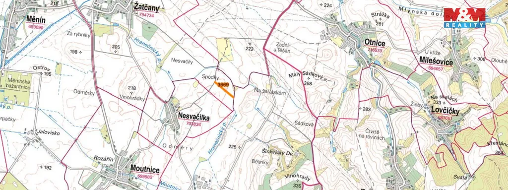 Asi 2,5 km jihovýchodně od malé vesnici Žatčany u Brna, nabízíme k prodeji pozemek o výměře 25.490 m2. V katastru nemovitostí je pozemek evidován jako orná půda a název katastrálního území je Žatčany. Na hranici pozemků teče Hranečnický potok. V případě zájmu nás neváhejte kontaktovat.