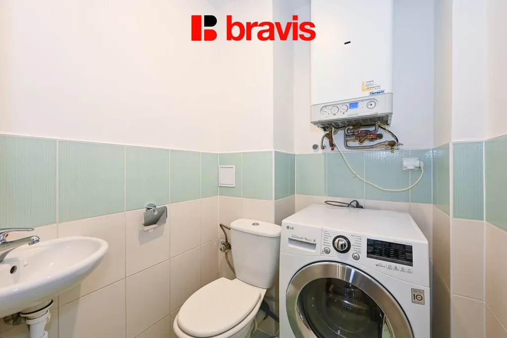 Byt má vlastní plynový kotel, což zajišťuje efektivní vytápění i ohřev teplé vody.
