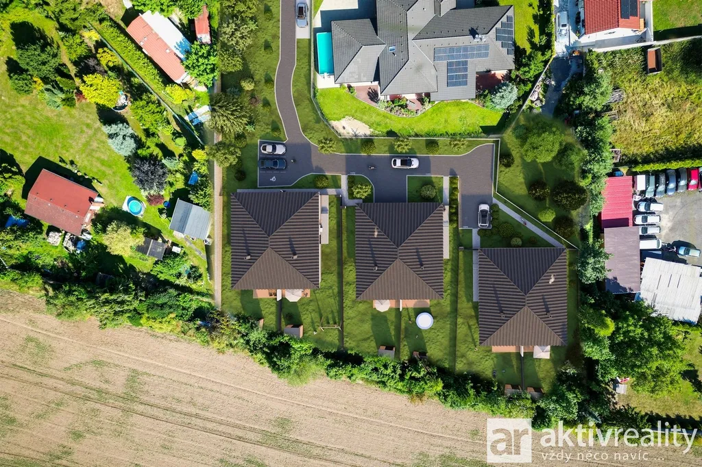 Prodej moderního úsporného bydlení v uzavřeném areálu tří domů se šesti přízemními jednotkami v klidné části Lužce nad Vltavou. Podrobnosti o projektu najdete na webu projektu DomyLužec viz video. Soukromá příjezdová cesta s bránou, rezidenční charakter a minimum provozu. Každá jednotka je přízemní bungalov s jednoduchou a funkční dispozicí 4+kk. Prodává se kompletně dokončená: lepený vinyl v obytných místnostech, osazené interiérové dveře, koupelny včetně obkladů a sanity (výběr v klientském standardu, možnost nadstandardu). Příprava pro kuchyň je samozřejmostí. Technické řešení cílí na nízké provozní náklady: tepelné čerpadlo s podlahovým topením v celém domě a centrální rekuperace pro trvale čerstvý vzduch, filtraci prachu a pylu a zpětné získávání tepla. Každá jednotka má vlastní domovní ČOV. Exteriér tvoří soukromá zahrada se zahradním domkem v ceně. Zadní části pozemků navazují na pás vzrostlých stromů a jsou chráněny vysokou zdí porostlou zelení – soukromí a stín od prvního dne. Každý má dvě vyhrazená parkovací stání (jedno u domu, druhé na společné cestě) a za bránou k využití místa pro návštěvy. Lokalita nabízí vyvážený poměr klidu a občanské vybavenosti. D8 je cca 7 km (Nová Ves), do Prahy pohodlně autem i veřejnou dopravou: autobus na Mělník s návazností do Prahy, vlak z Vraňan na Masarykovo nádraží. Volný čas: Vltava a historický kanál s cyklostezkou. Podrobnosti o projektu DomyLužec najdete na webu projektu viz video.