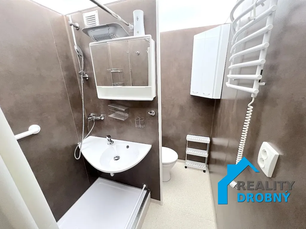 V kuchyni je kuchyňská linka na míru, sporák se sklokeramickou varnou deskou, digestoř, dřez, pračka, lednice s mrazničkou a obklady. V koupelně je sprchová vanička, umyvadlo, galerie se zrcadlem, elektrický topný žebřík, LED osvětlení stropu a toaleta. V chodbě je prostorná šatní skříň. Podlahy - plovoucí, linoleum. Vytápění a ohřev vody vlastní plynovou kotelnou v domě. K dispozici je možnost využití klimatizační jednotky.