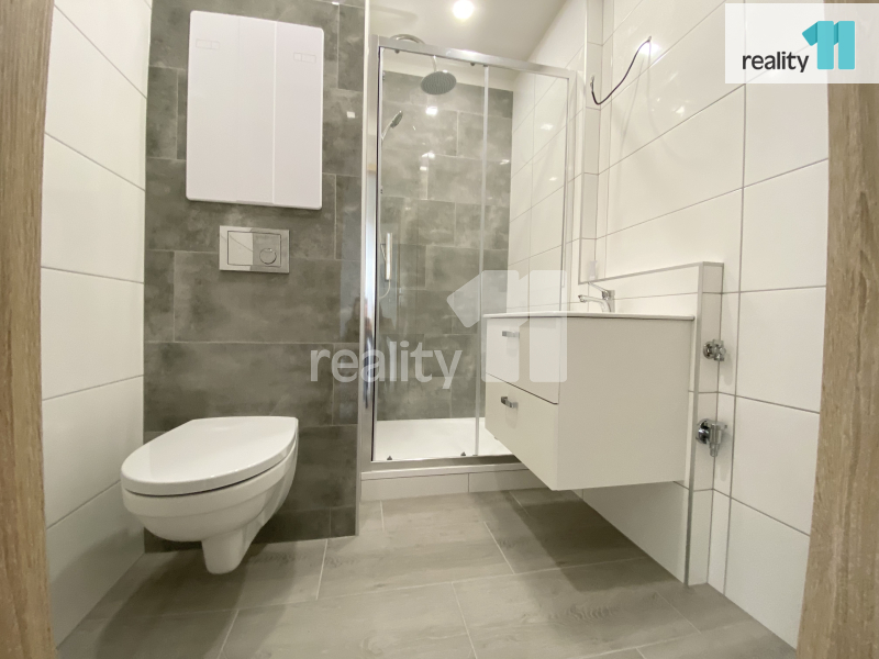 Dispozice a vybavení: vstupní chodba oddělena příčkou a dveřmi, kuchyň s obývacím pokojem, ložnice, zděná koupelna se sprchovým koutem, závěsná skřínka s umyvadlem, závěsné WC. Nová moderní kuchyňská linka do L vybavena vestavěným spotřebiči - vestavná trouba, komínový odsavač par, sklokeramická deska a myčka na nádobí. Příjemné prostředí v bytě vytvářejí snížené stropy s bodovými světly v kuchyni, koupelně a na chodbě.