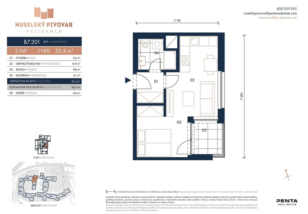 Nabízíme k pronájmu kompletně vybavený byt 1+kk s podlahovou plochou 33 m² v exkluzivním rezidenčním projektu Nuselský pivovar, který spojuje moderní bydlení s historickým kouzlem této unikátní lokality.