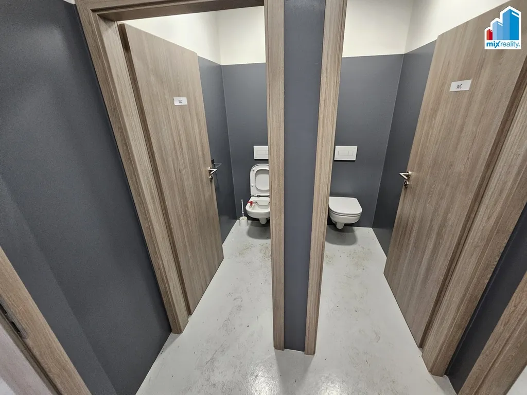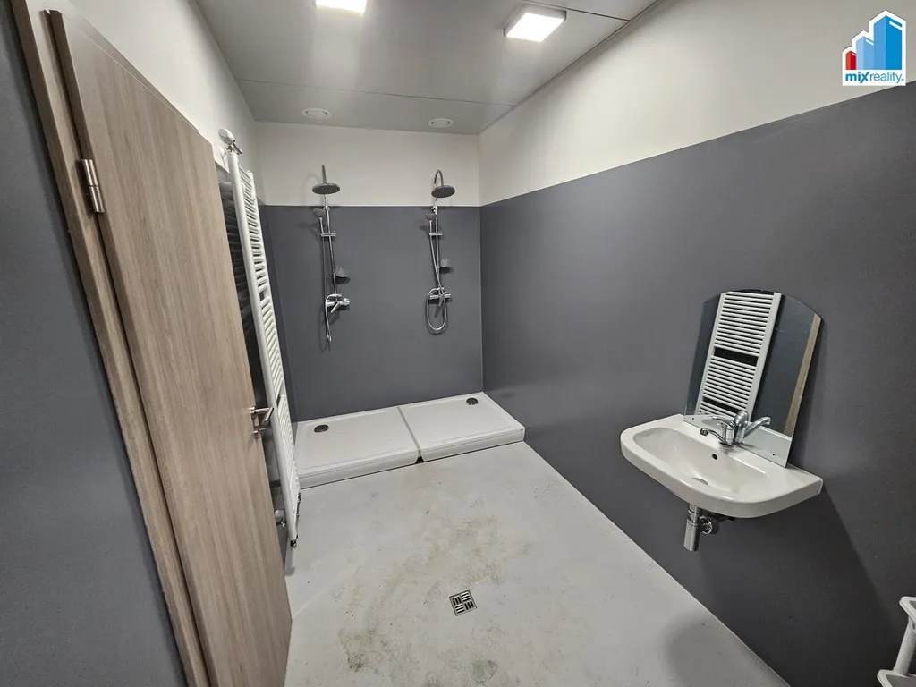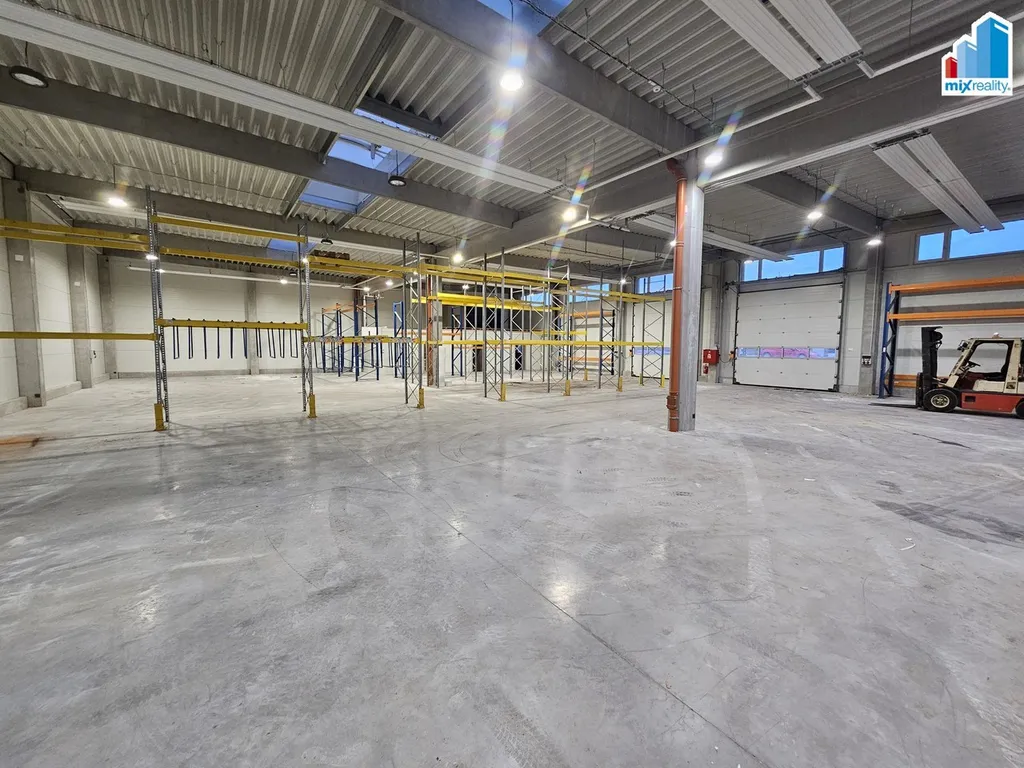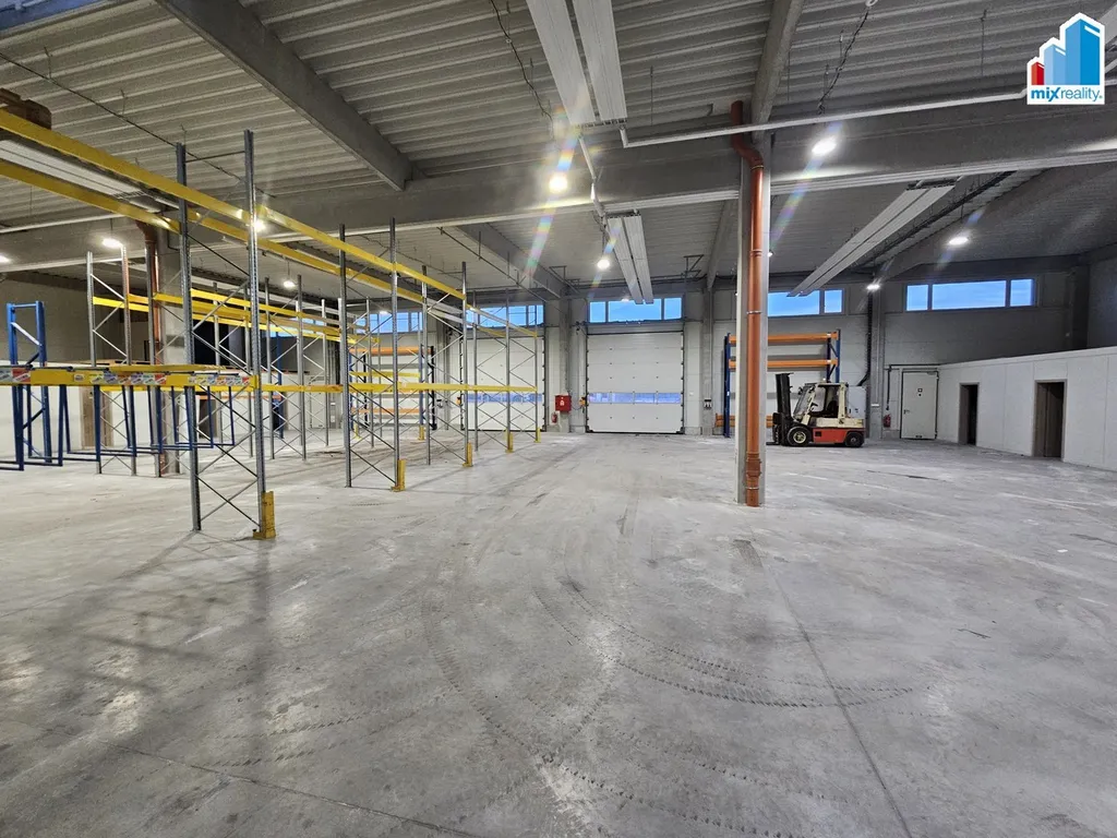Prostory o celkové výměře 893 m2 jsou vybaveny po obou stranách kanceláří, šatnou, sociálním zařízením a dvěma vraty o výšce 4 m.