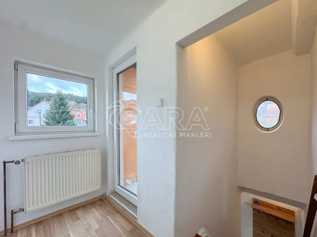 Dům je v dobrém technickém stavu a nabízí praktickou dispozici vhodnou pro rodinu či pár. V přízemí se nachází zádveří, chodba, koupelna se sprchovým koutem a WC, kuchyně a velmi prostorný obývací pokoj s jídelnou, odkud vedou balkonové dveře přímo na menší zahrádku. Po schodišti se dostanete do 2. NP, kde se nachází chodba, tři samostatné obytné pokoje a druhá koupelna se s vanou a WC. Topení je řešené plynovým kotlem a stejně tak ohřev vody. Parkovat je možné přímo před domem, kde je dostatek místa pro dvě auta. K domu náleží jedna garáž, kde je další parkovací stání a její měsíční nájemné činí 1.500,- Kč. Mimo jiné dům doplňuje sklep a kůlna (kolárna) pro skladovací prostory. Zahrada u domu umožňuje příjemné posezení nebo prostor pro menší zahrádku.