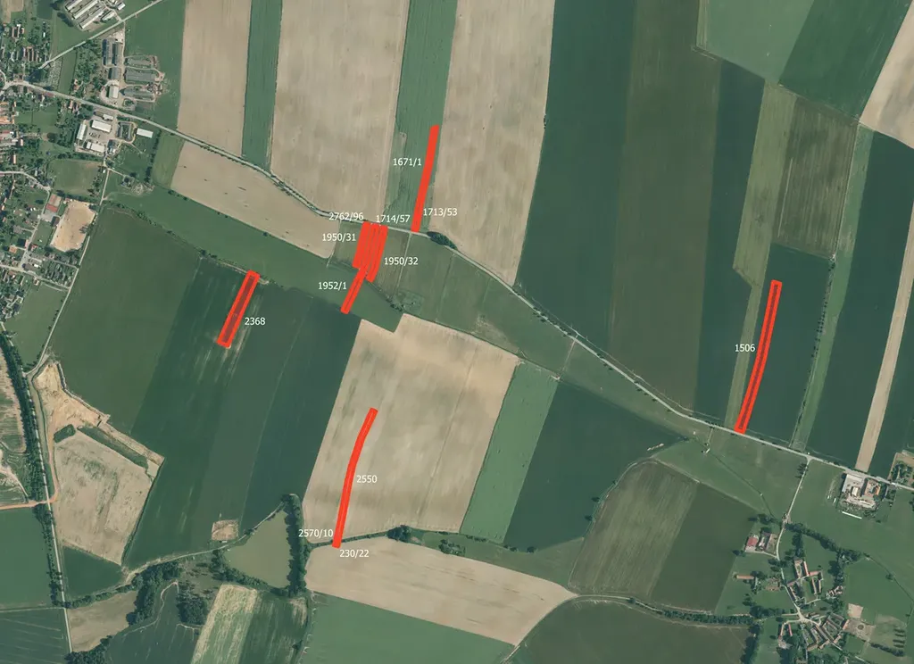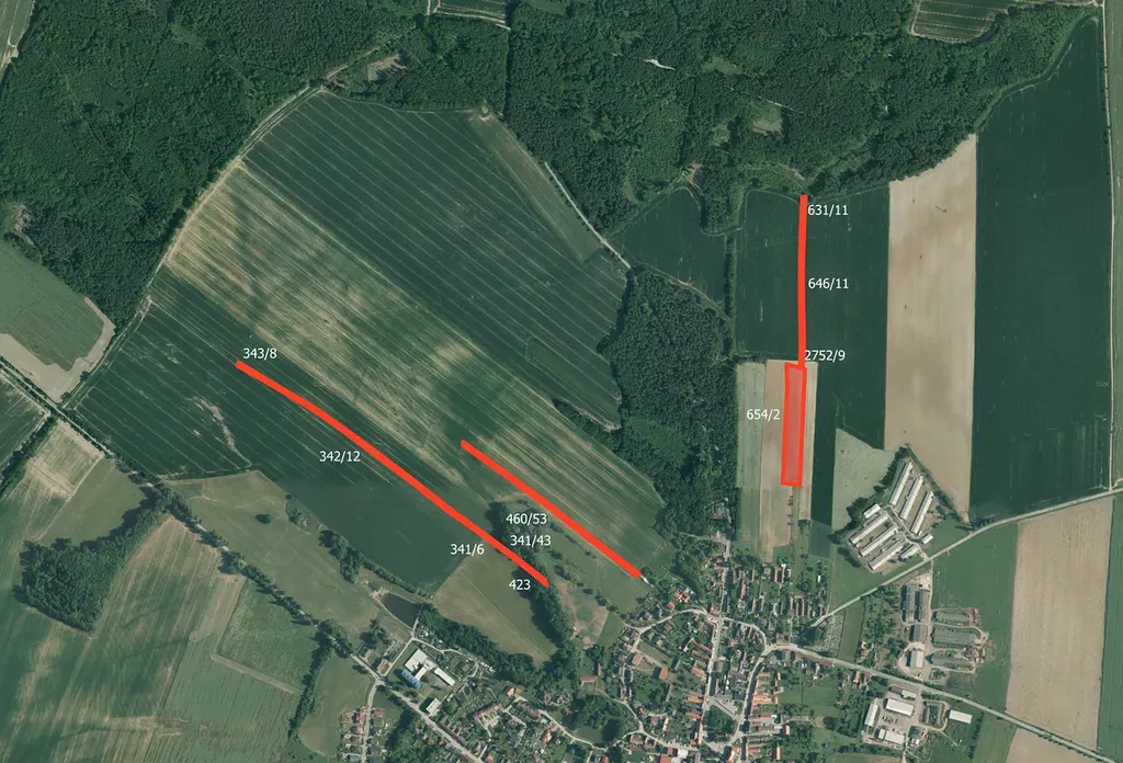 Celková výměra všech pozemků činí 74 205 m², k prodeji je z toho 24 735 m², z toho: