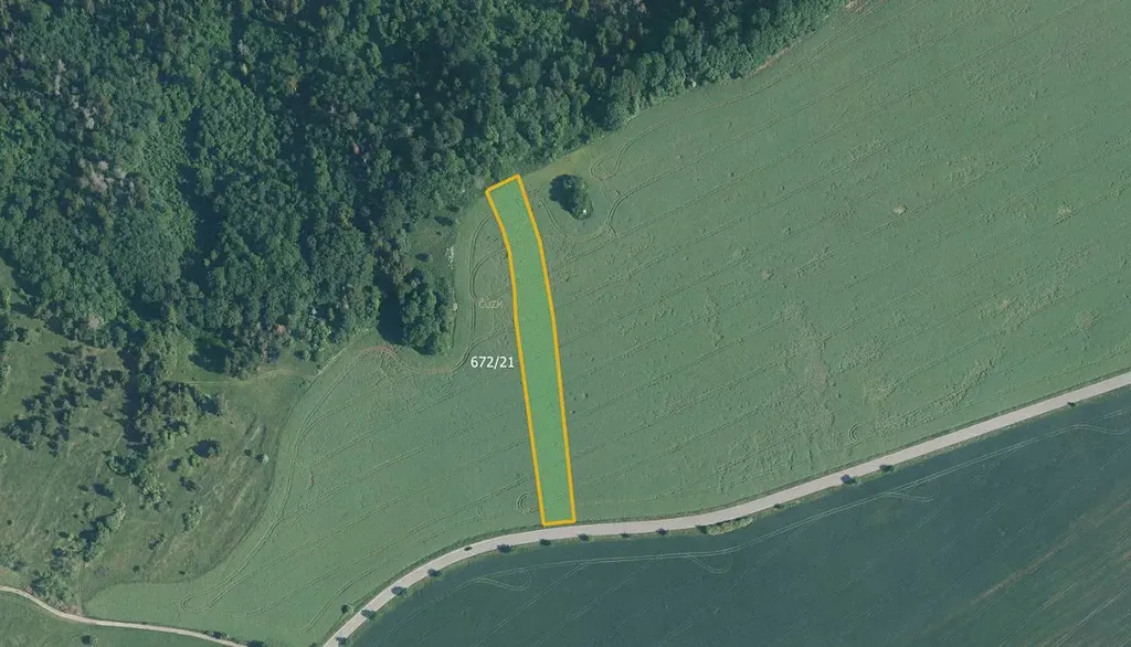 Jedná se o parcelu č. 672/21 o výměře 4 986 m², vedenou jako orná půda. Pozemek leží v rovinatém terénu a přímo u cesty.