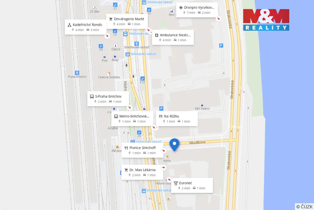 Velmi dobře udržovaný byt se současnou dispozicí 2+1 s malou pracovnou s možností úpravy na 3+kk se šatnou. Nachází se v atraktivní lokalitě pražského Smíchova, ul. Moulíkova. Byt je situován ve 3. patře cihlového domu bez výtahu, má velkorysou halu se vstupem do všech místností, zasklenou lodžii do vnitrobloku (2,5 m²) a balkon do ulice (1,4 m2). Prohlášení vlastníka uvádí výměru 74 m², skutečně zaměřeno 80,6 m² užitné plochy. K dispozici je prostorná kuchyně s místem pro jídelní stůl, komora a sklep (v současnosti probíhá kompletní rekonstrukce sklepů s instalací nových kovových sklepních kójí). Koupelna a WC byly rekonstruovány cca před 12 lety, v pokojích jsou renovované parkety. Byt je vhodný k rekonstrukci dle vlastních představ. Lokalita nabízí skvělou dopravní dostupnost – metro B Smíchovské nádraží, vlak, tramvaje i autobusy přímo u domu, rychlé napojení na Strakonickou i směry Kladno a Beroun. V okolí je kompletní občanská vybavenost, obchody, školy, OC Nový Smíchov..