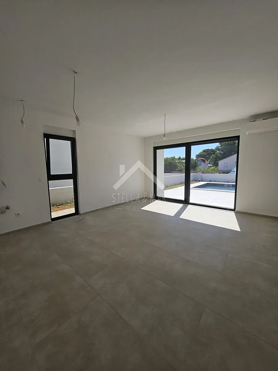 V patře je apartmán 3KK s terasou a výhledem na bazén. Terasa a pohled na bazénem.