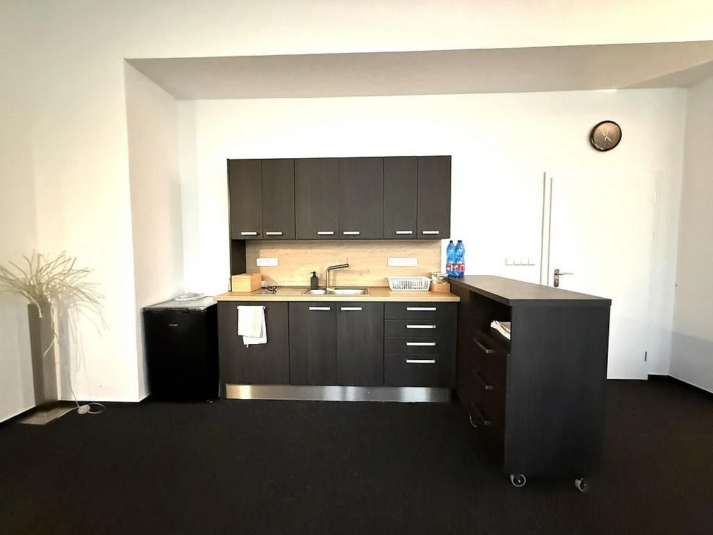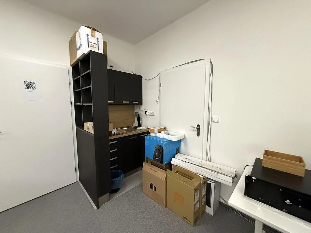 Nabízený nebytový prostor se nachází v kamerově hlídané budově za bránou. Kancelář má celkovou výměru cca 38 m² a nachází se v přízemí. Prostor je příjemně prosvětlený díky dvěma oknům, která vytvářejí vzdušnou a komfortní pracovní atmosféru. Kancelář je nově vybavena malou kuchyňskou linkou s dostatečným úložným prostorem a dřezem. Na chodbě jsou společné prostory jako je WC nebo zasedací místnost, kterou si lze pronajmout za poplatek. Zasedací místnost je vybavena velkým stolem se židlemi, křesly, televizemi a dalším nábytkem včetně kuchyňské linky s dřezem a lednicí.