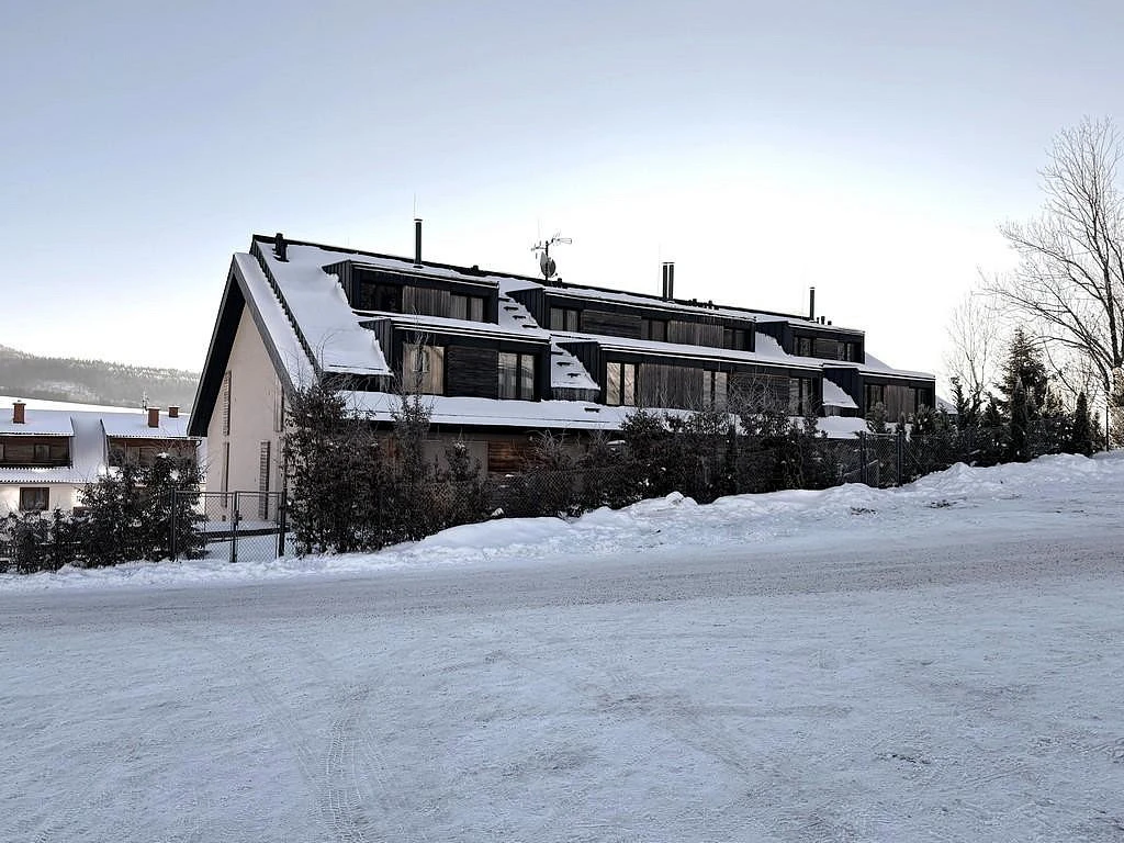 Ve třípodlažní budově, kde se apartmán nachází je mimo apartmány a sklepní kóje i lyžárna, která je určena pro obyvatele či nájemce tohoto domu. Budova, jak je víše uvedeno se nachází v bezprostřední blízkosti sjezdovky, kde bez problémů dojdete v lyžácích přímo k vleku. Samotná budova stojí na velkém uzavřeném pozemku, kde je přístup pouze závorou na dálkové ovládání, což zajišťuje mimo jiné i maximální bezpečnost osob v resortu se nacházejících. U budovy je také malý parčík, kde je ohniště s malou hrací plochou pro děti.