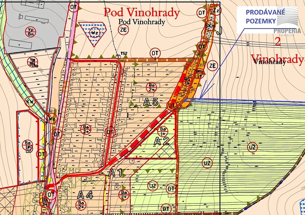 V územním plánu je přední část parcely určena k výstavbě v ploše SKb – vinné sklepy, malovýrobní objekty s možností integrovaného ubytování. Díky tomu je zde možné realizovat například vinný sklep se zázemím, drobnou výrobu nebo objekt s ubytováním, vždy po individuálním schválení stavebním úřadem.