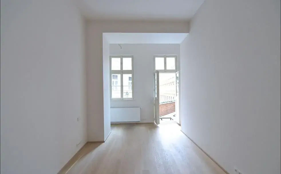 Reprezentativní byt 2+kk (1 ložnice, 1 koupelna), o rozloze 67m2 s terasou, je situovaný v 1. patře renovované rezidenční budovy s výtahem, na Novém Městě Praha 1, v Petrské ulici.