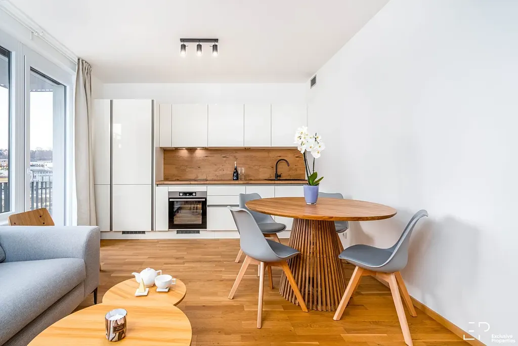 Byt je nově zařízený a připravený rovnou k nastěhování. V obývací části najdete sedací soupravu, TV stolek, jídelní stůl a plně vybavenou kuchyňskou linku se spotřebiči (varná deska, lednice, myčka, trouba, digestoř).