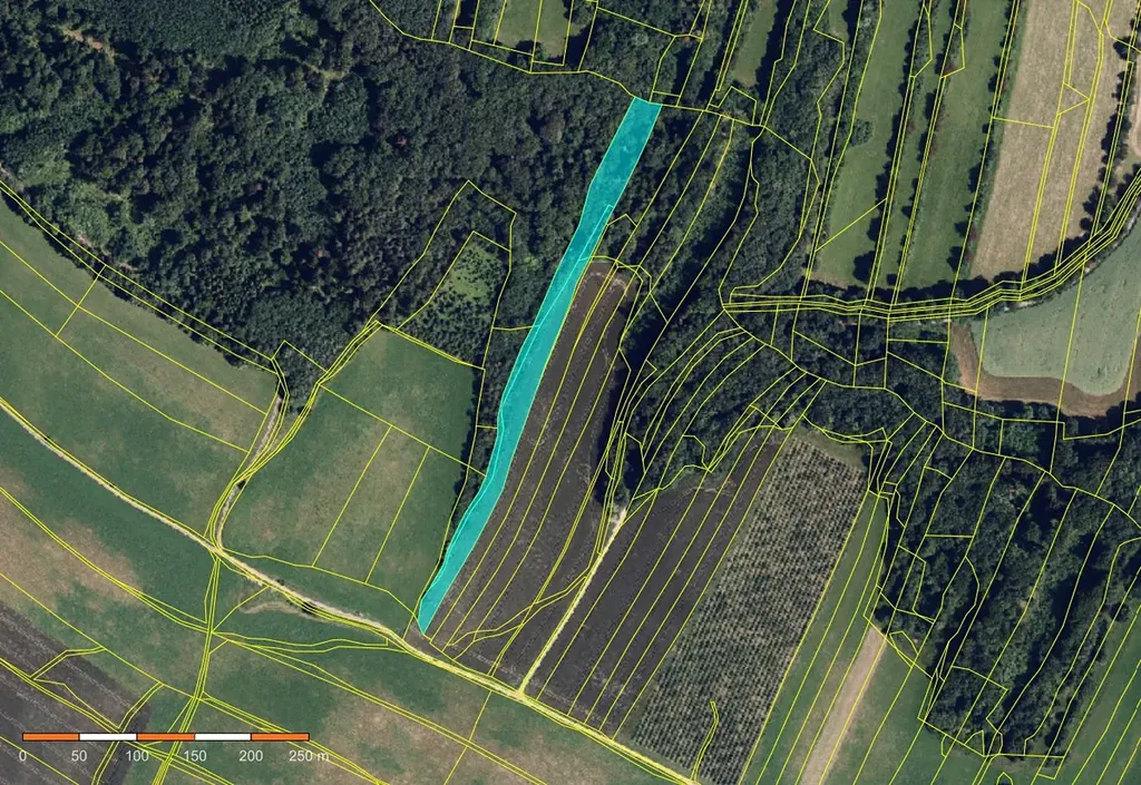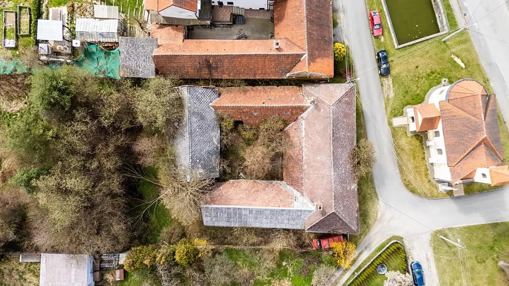 Ve funkčním celku s domem jsou pozemky parc.č. St. 43 o evidované výměře 794 m², zastavěná plocha a nádvoří, součástí je stavba rod. domu Ponikev č.p. 15, parc.č. 57 o evidované výměře 2.515 m², ovocný sad, parc.č. 58/7 o evidované výměře 209 m², ostatní plocha, ostatní komunikace, parc.č. 895 o evidované výměře 90, trvalý travní porost, parc.č. 896/1 o evidované výměře 2.077 m², trvalý travní porost a parc.č. 896/2 o evidované výměře 585, zahrada. Pozemky za stavbou tvořící jeden funkční celek jsou o celkové evidované výměře 6.270 m². Ostatní pozemky jsou mimo funkční celek s domem. Jsou většinou zemědělského charakteru, na některých se nachází náletové porosty. Celková výměra těchto pozemků činí 51.916 m². Část pozemků je užívána místním zemědělským družstvem. Pozemek p.č. 299 je lesním pozemkem o evidované výměře 4064 m², způsob ochrany: chráněná ložisková území, pozemek určený k plnění funkcí lesa, přírodní rezervace. Nachází se v přírodní rezervaci Rudka.