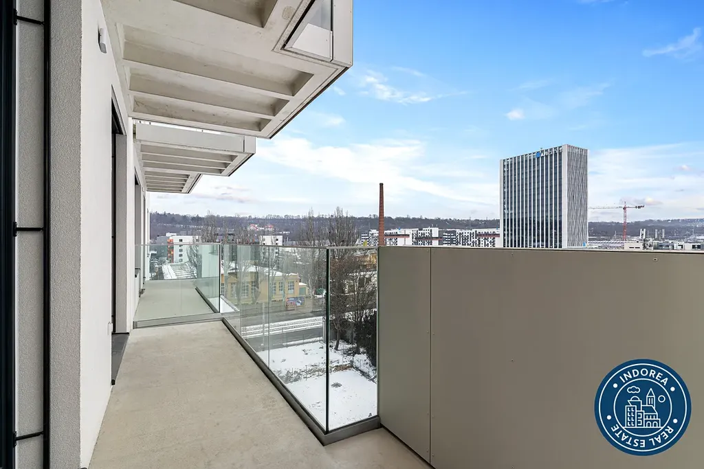 Byt je situován v lepším sedmém patře novostavby. Čtvrť Emila Kolbena od společnosti Skanska, která kombinuje komfortní bydlení s inspirativním prostředím.