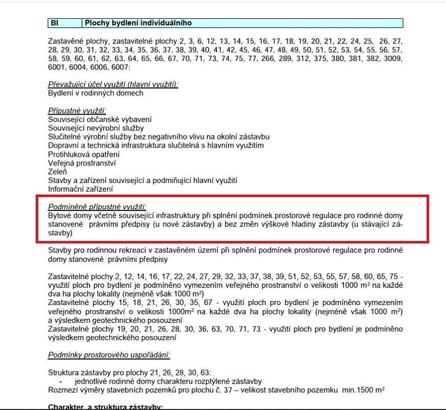 Vzhledem k rozšíření pozemku a možnostem v rámci územního plánu je možné na pozemku po demolici stávajícího domu realizovat stavbu obytného domu o podlahové ploše cca 600 m2. ( 5-6 bytů )