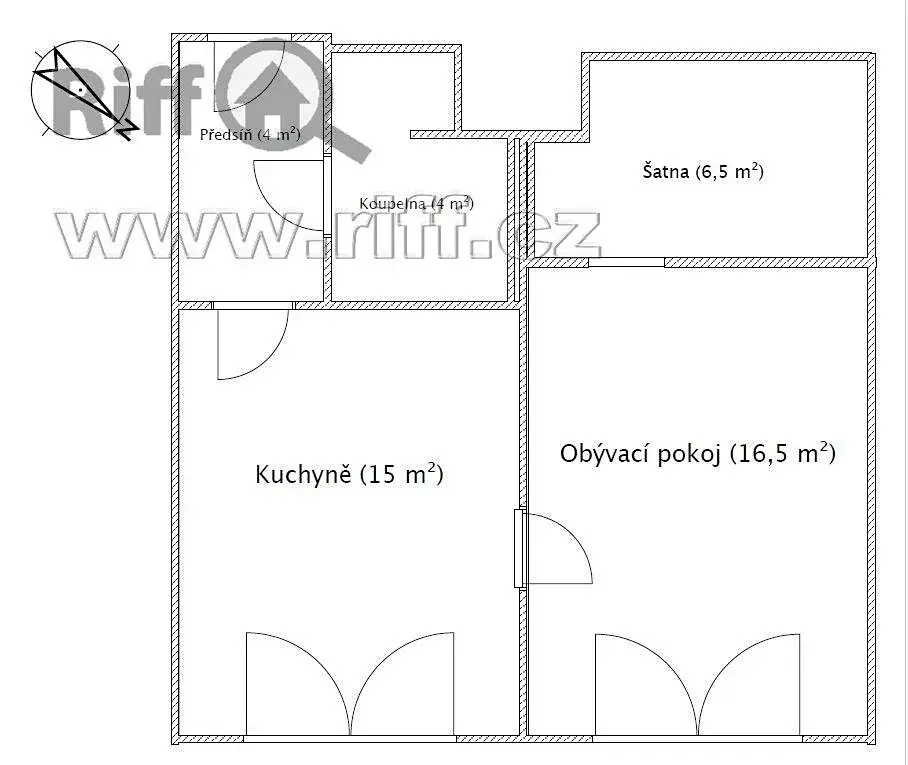 Dispozice: Plocha bytu je 46m2. Byt se nachází v 1.podlaží/9. Je orientovaný na severovýchod. Z chodby je přístup do koupelny a do obývacího pokoje s KK. Z něj jsou dveře do ložnice. S ložnicí sousedí velmi prostorná šatnou.