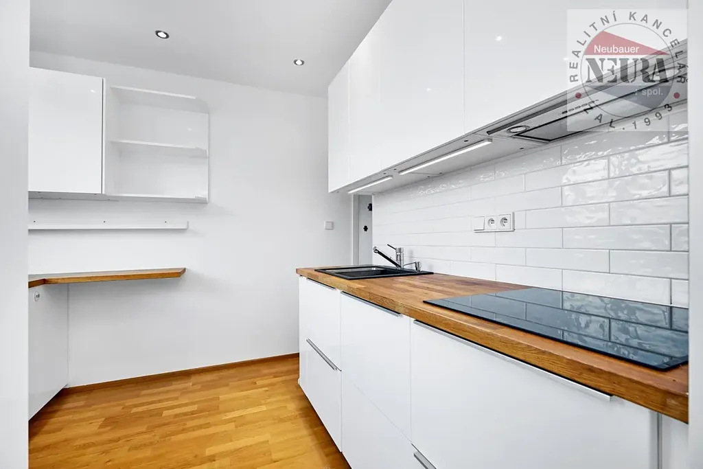 bukové podlahy a dlažba, kuchyňská linka včetně spotřebičů (zn. LG, Ikea), v ložnici šatní skříň, úložné prostory a vestavěná skříň v předsíni, v koupelně elektrické podlahové topení a vestavěné police, žaluzie v oknech, byt je po celkové rekonstrukci v roce 2022,