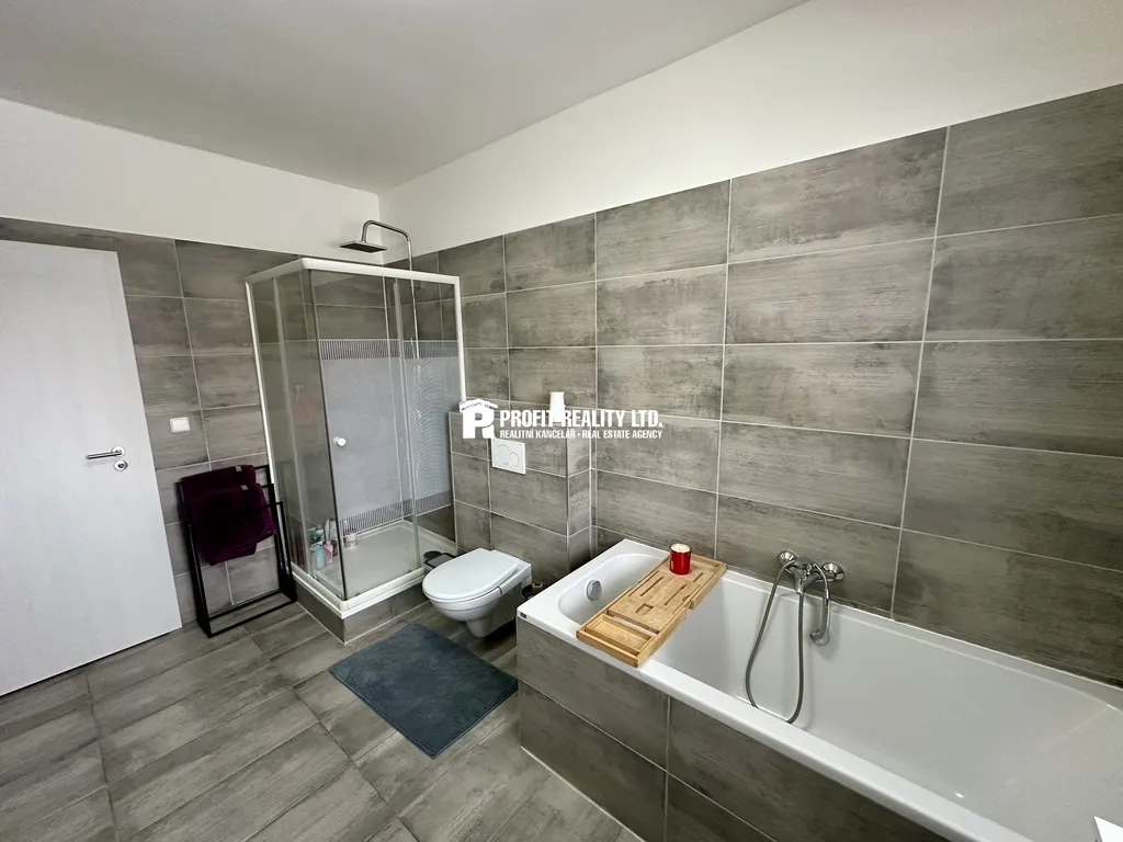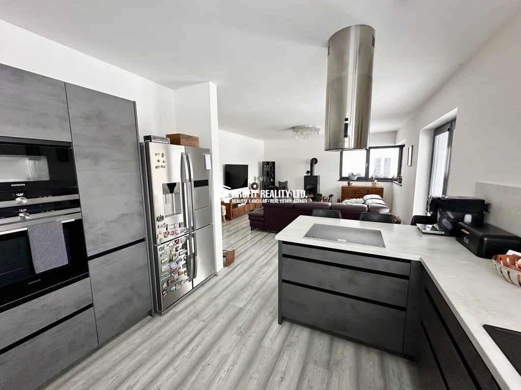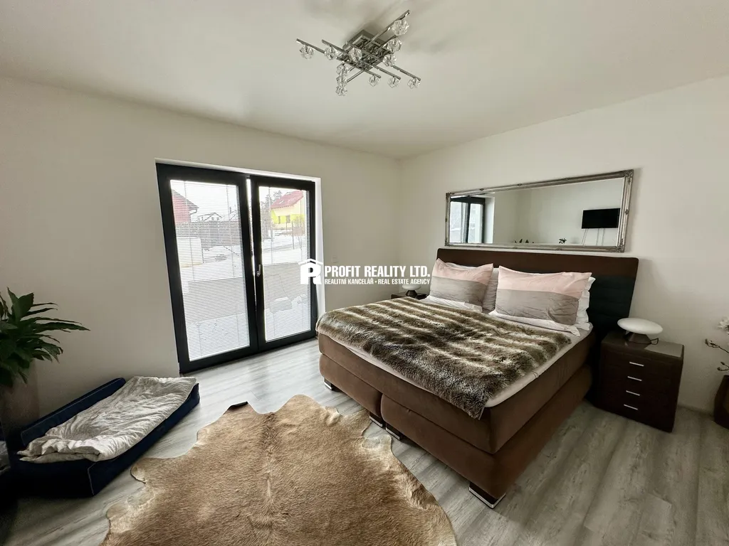 Zprostředkujeme vám prodej novostavby rodinného domu v Králově Dvoře, Křižatkách. Jedná se o přízemní stavbu kolaudovanou v roce 2021, vystavěnou na pozemku o celkové výměře 883 m2. Stavba je umístěna v okrajové části obce, kde se nacházejí výhradně novostavby rodinných domů. Rodinný dům sestává z vstupní předsíně, chodby, obývacího pokoje, kuchyňského koutu, tří ložnic, koupelny s toaletou, samostatné toalety a technické místnosti. Obývací pokoj navazuje na kuchyňský kout s moderní kuchyňskou linkou s vestavnými spotřebiči a disponuje francouzskými dveřmi, které vedou na zpevněnou terasu. Všechny tři ložnice jsou prostorné a díky francouzským dveřím netrpí nedostatkem denního světla. V koupelně je umístěna vana, sprchový kout a závěsná WC mísa. V obytných místnostech na podlahách lamino, na chodbě a soc. zařízení je položena keramická dlažba. Okna domu jsou plastová s izolačním trojsklem a vnitřními žaluziemi. Objekt je napojen na všechny inženýrské sítě (elektřina, obecní vodovod, tlaková kanalizace). Plynová přípojka u domu v kapličce. Vytápění domu je zajištěno elektro kotlem a teplovodním podlahovým topením. Příjemným bonusem je krb umístěný v obývacím pokoji. Celý pozemek je oplocen drátěnkou. Na zahradě je vyseta tráva a jiné okrasné rostliny a dřeviny. Dešťová voda je svedena do retenční nádrže umístěné na pozemku. Parkování možné na pozemku. Velmi dobrá dopravní dostupnost. Nájezd na D5 je vzdálen cca. 2 km. V Králově Dvoře je veškerá občanská vybavenost. Praha -Zličín autem jen 20 minut.