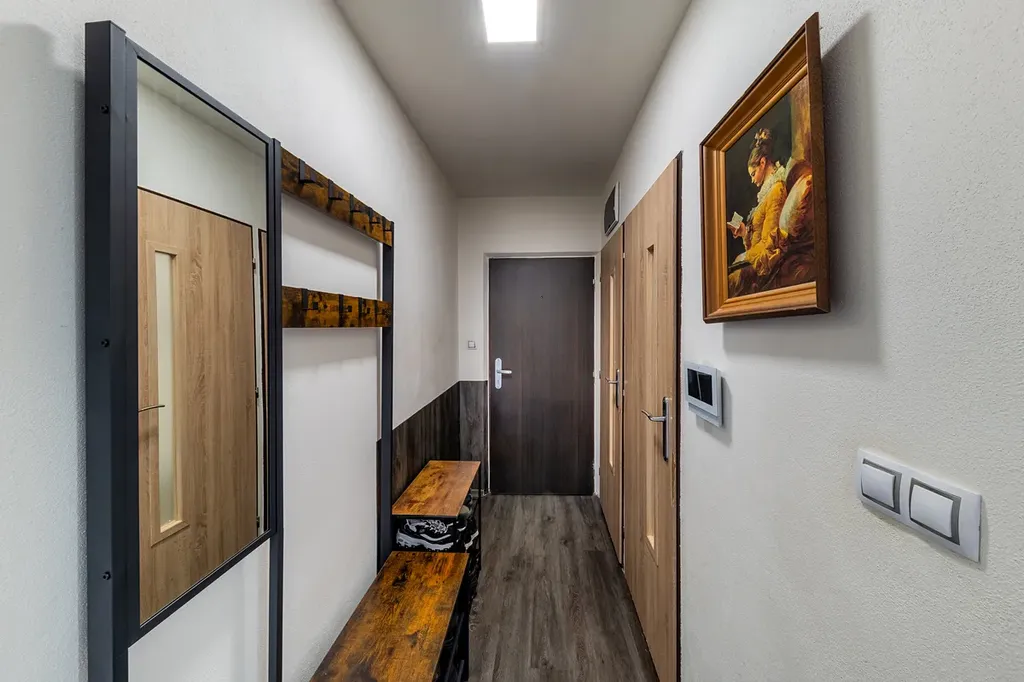 Byt v osobním vlastnictví po celkové rekonstrukci, druhé patro. Podlahová plocha bytu 61,23 m2, plocha sklepa 2 m2, plocha lodžie 6 m2. Dálkové topení, dálkový ohřev vody.