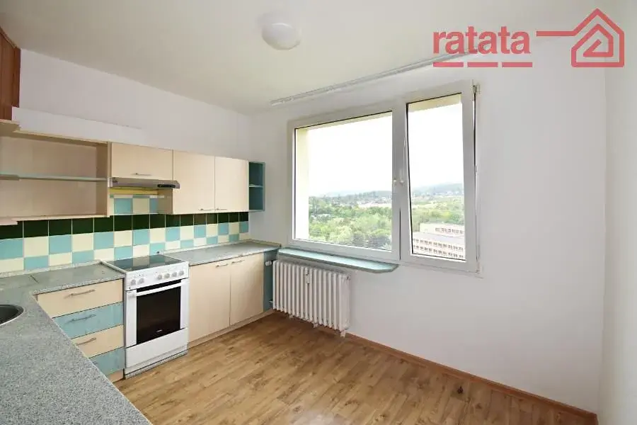 Pronájem bytu 2+1 s balkónem, který se nachází ve 13. patře zatepleného panelového domu v ulici Holešická 4740, Chomutov.
