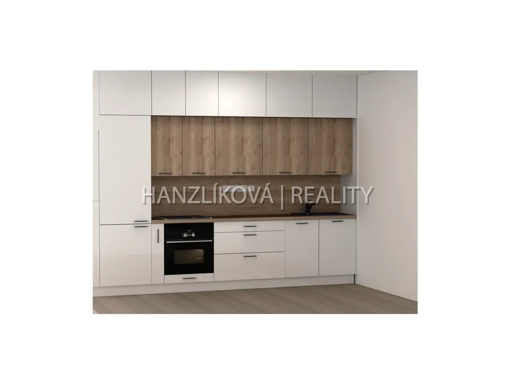 Byt bude zařízen kuc. linkou včetně všech spotřebičů a vestav. skříní.