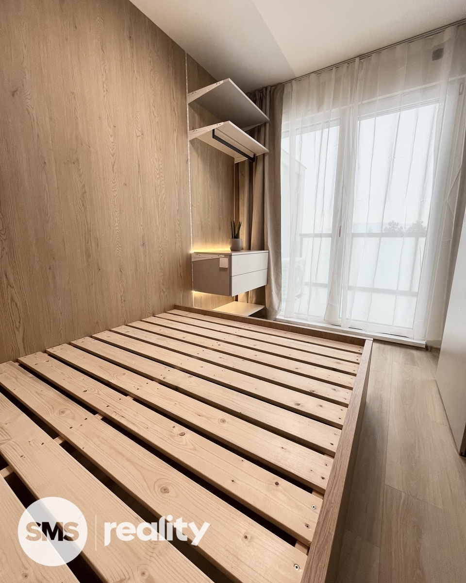 Nabízíme k pronájmu nadstandardní byt na ulici Palackého v Novém Jičíně. Byt je umístěn ve 4. nadzemním podlaží bytového domu s výtahem. Je vybaven kuchyní na míru, ta disponuje vestavěnou myčkou, lednicí s mrazákem, el. troubou a indukční varnou deskou. Obývací prostor je vybaven LED televizí, sofa, klimatizací a jídelním koutem, od ložnice je oddělen příčkou. Ložnice je vybavena postelí s roštem a přímým vstupem na terasu, která nabízí krásný výhled. V koupelně je umístěn sprchový kout, elektrický kotel a místo na pračku. Předsíň nabízí dostatek úložných prostor. Vítání jsou nájemníci bez domácích mazlíčků a nekuřáci.