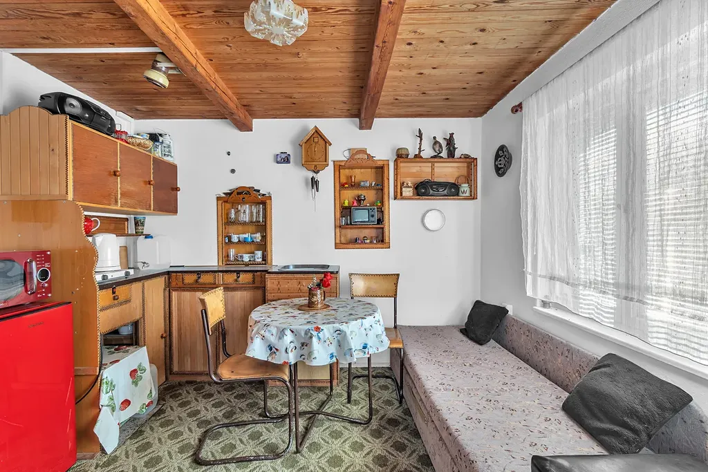Chata je umístěna v klidné části osady. Dispozice zahrnuje jednu obytnou místnost s místem pro kuchyňku, podkrovím sloužícím jako ložnice a sklepem.