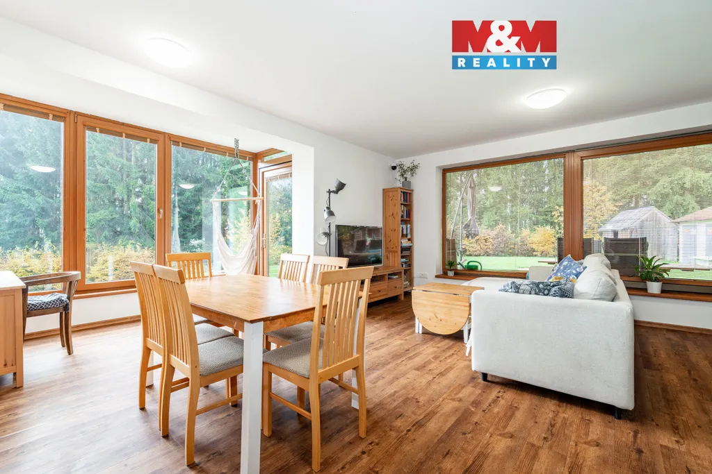 Nemovitost z roku 2009 prošla nedávnou rekonstrukcí, při které došlo k úpravě interiérů zahrnující lehké dispoziční úpravy, nové podlahové krytiny nebo například novou kuchyň i obě koupelny. Standardem je zde podlahové topení s elektrokotlem, doplněno o kanadská krbová kamna v obývacím pokoji. Na pozemku naleznete vlastní studnu napojenou na okruh v domě. Jako další zdroj vody je využíváno ale i připojení na vodovod. Dispozice domu je řešena jako 5+kk. Tři samostatné ložnice se nacházejí v horním patře. V přízemí je dále k dispozici obývací pokoj napojený na halu a další pokoj, hodící se jako pracovna.