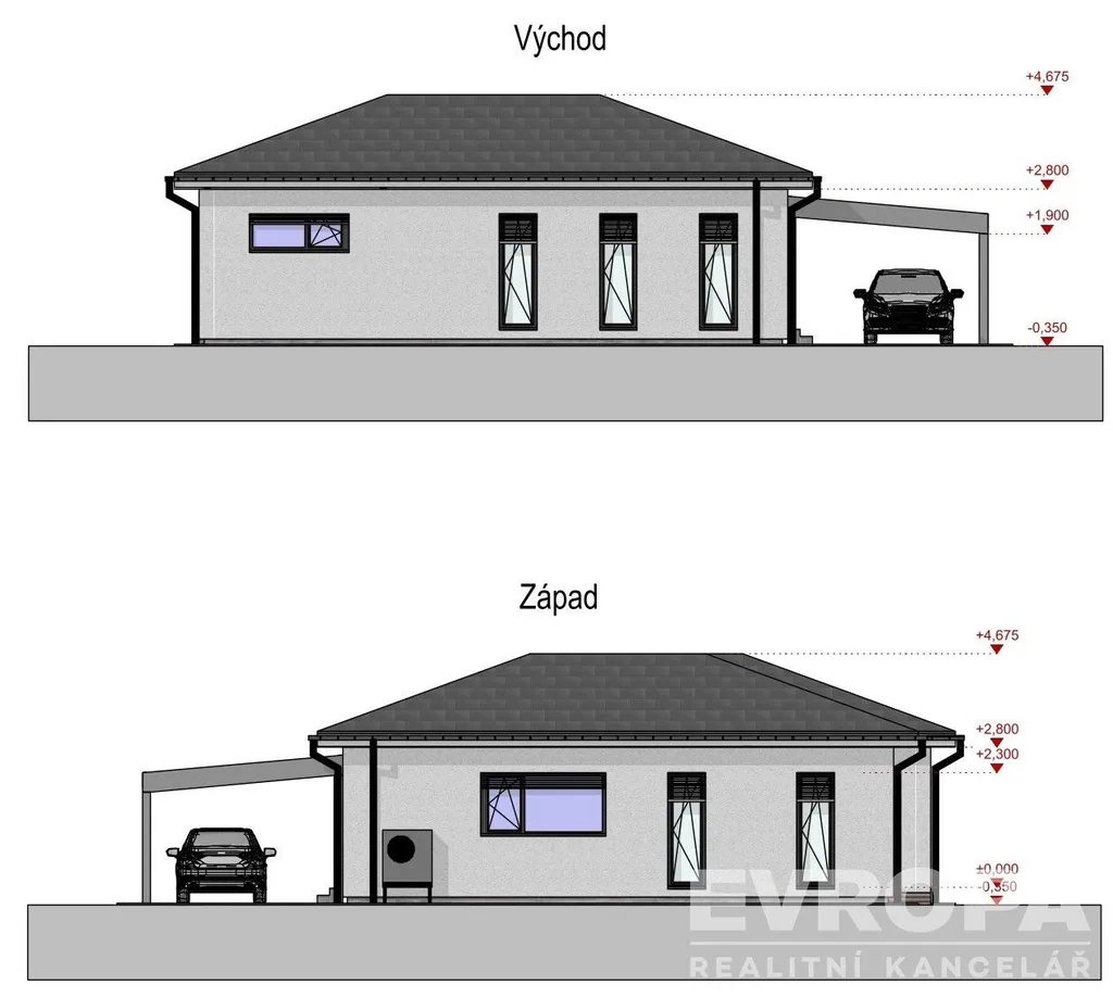 Interiér: Kuchyňská linka (příprava i pro ostrůvek), vnitřní dveře a zárubně, obklady a sanita ve dvou koupelnách a WC, koncové prvky elektro.