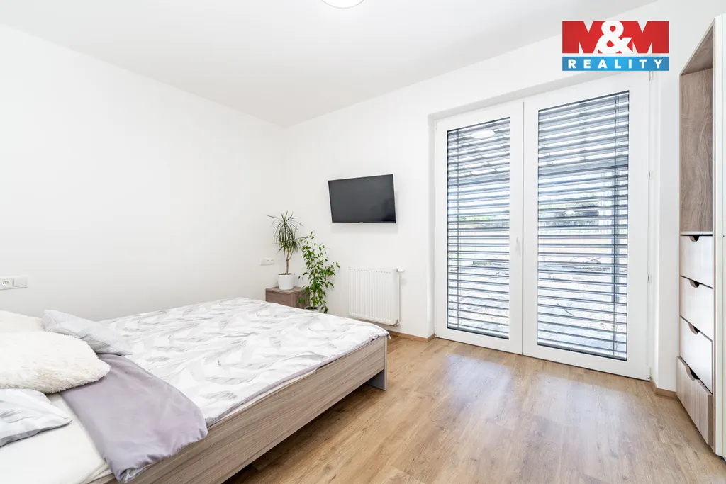 Byt o dispozici 3+kk a užitné ploše 102m² se skládá ze dvou ložnic, koupelny a samostatného WC. Prostorná chodba, které vede bytem následně ústí do světlého obývacího pokoje s kuchyňským koutem. Při vstupu do bytu je Vám hned v zádveří k dispozici také prostorná šatna. Na obývací pokoj navazuje balkon o ploše 11 m². K bytu náleží zahrádka o ploše 74m², na kterou je přístup z obou ložnic. Všechny pokoje tak poskytují možnost vyjít ven. K bytu dále náleží rovněž parkovací stání v podzemních garážích a sklepní kóje pro skladování potřebných věcí.